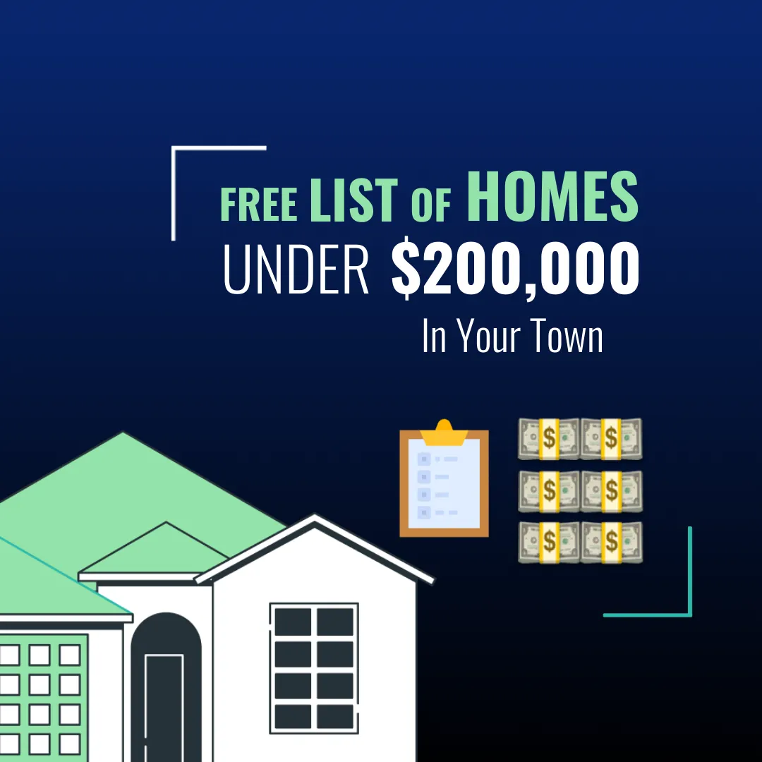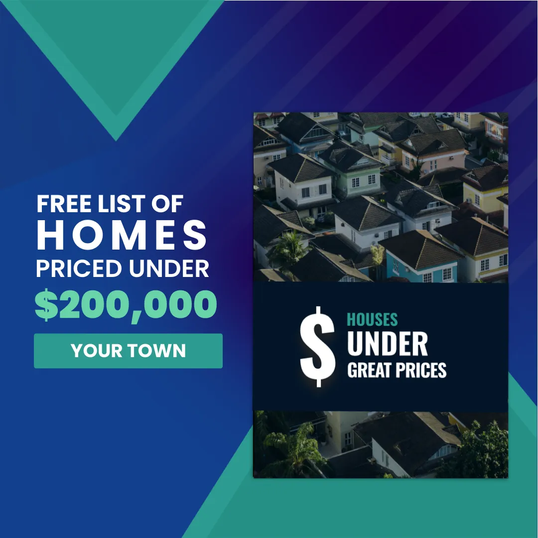 Get your hands on a FREE list of the Best Homes Priced Under 🔻💰 $200,000 within 🚗 15 mile radius of Your Town 👇